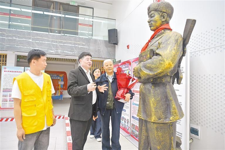 謝雙義(中)向來自山東省臨沂市的雷鋒志愿者介紹情況。