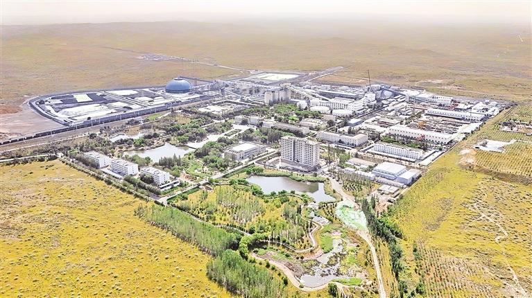 從空中俯瞰棗泉煤礦,這里看不到漫天灰塵,聽(tīng)不到機(jī)器咆哮與卡車(chē)轟鳴,綠地花草、景觀湖、運(yùn)動(dòng)場(chǎng)在視線中依次鋪開(kāi)。