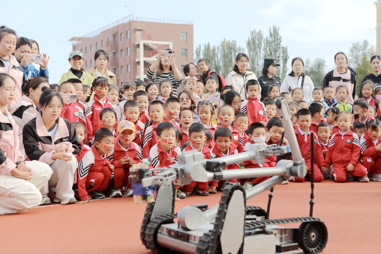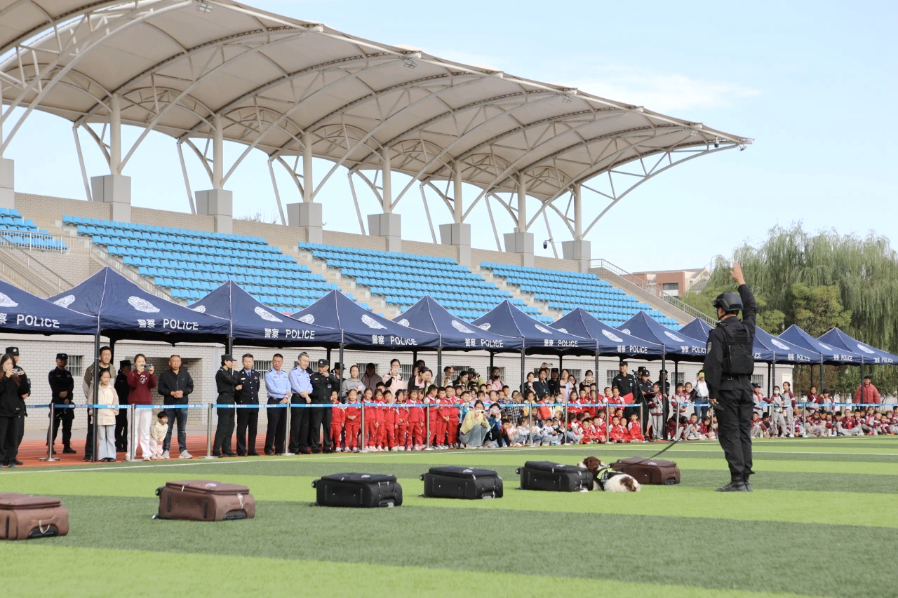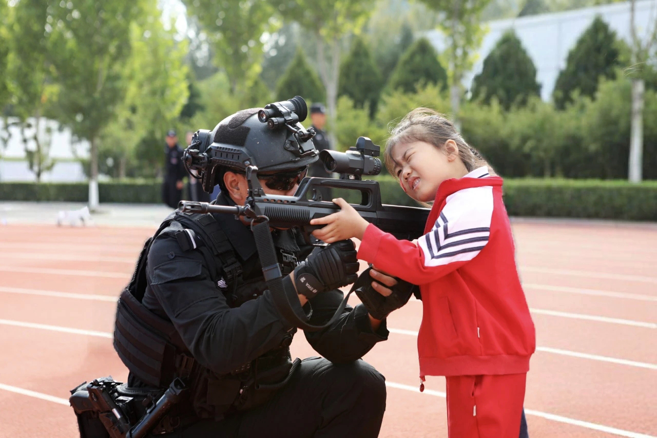 訓(xùn)練場上,特警隊(duì)員以雷霆之勢亮相,警棍盾牌剛勁有力、戰(zhàn)術(shù)槍操虎虎生風(fēng)、應(yīng)用射擊百發(fā)百中,無人機(jī)騰空而起完成低空偵察模擬,警犬亮相開展搜爆撲咬,孩子們歡呼雀躍,不停模仿特警叔叔的“戰(zhàn)斗姿勢”,童趣場景活力滿滿。
