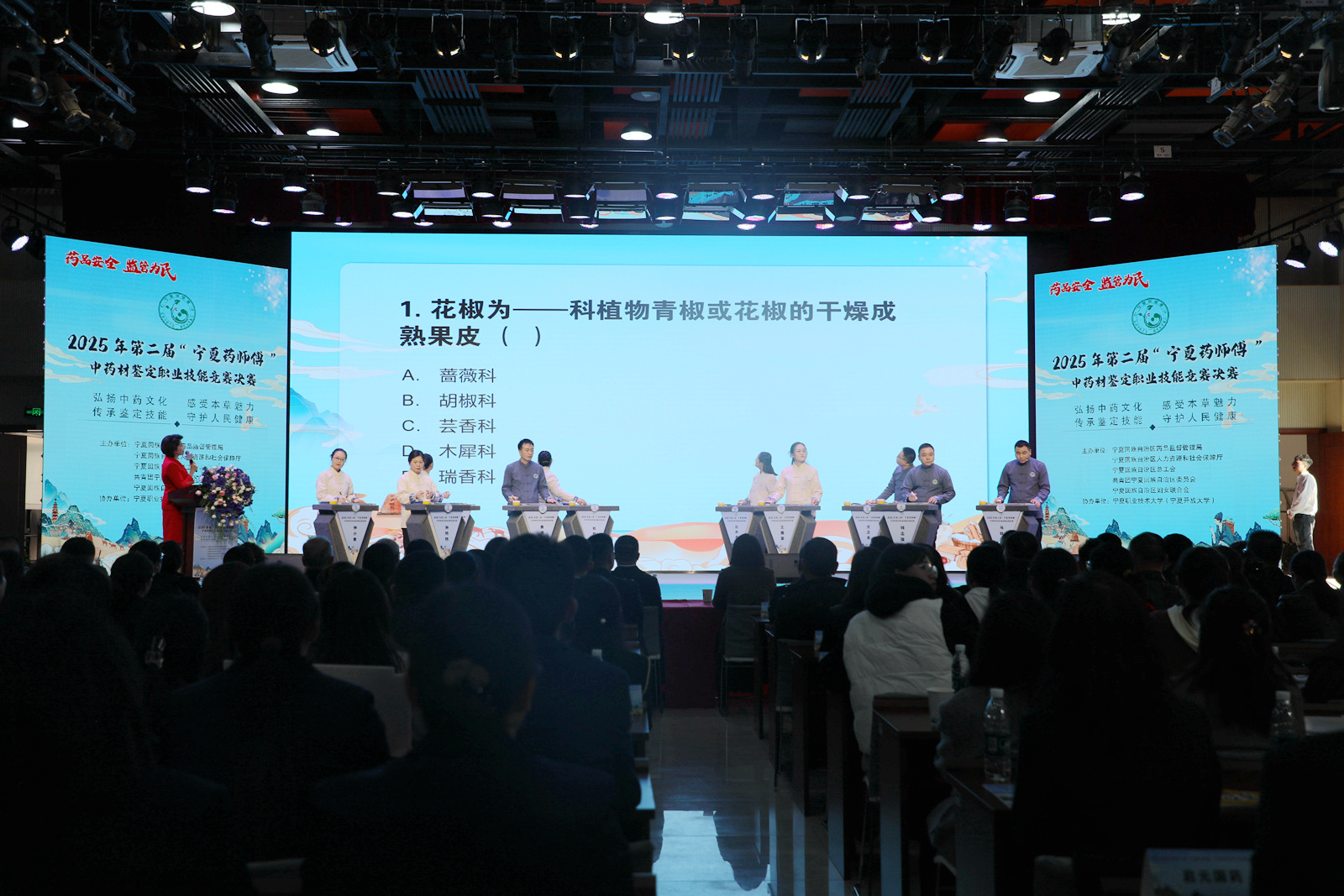 自賽事啟動以來,全區(qū)共有3645名中藥相關(guān)從業(yè)人員報名參賽。經(jīng)過線上初賽和復(fù)賽選拔,10名優(yōu)秀選手脫穎而出進(jìn)入決賽。比賽設(shè)置“采藥”“識藥”“辨藥”“挑戰(zhàn)”四個環(huán)節(jié),重點考查選手的理論知識、藥材辨識與真?zhèn)舞b定能力,全面展示寧夏中藥領(lǐng)域從業(yè)者的專業(yè)素養(yǎng)和技能水平。