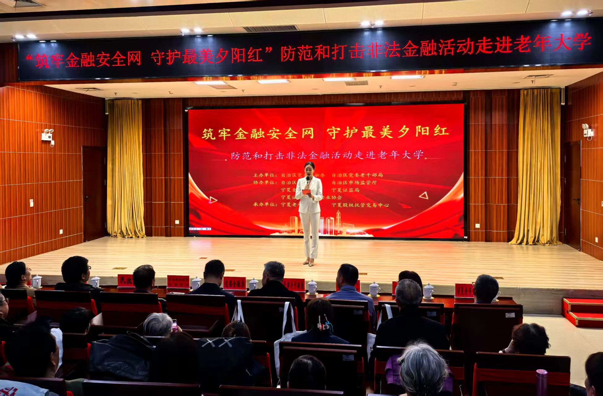 寧夏新聞網訊(記者 胡琴 文/圖)10月30日,由自治區(qū)黨委金融辦、黨委老干部局主辦,自治區(qū)民政廳、市場監(jiān)管廳、寧夏金融監(jiān)管局、寧夏證監(jiān)局、寧夏老年大學等協(xié)辦的防范和打擊非法金融活動“七進”系列宣傳之——“走進老年大學”專場順利舉行,200余名老年大學學員現場參與了宣傳活動。