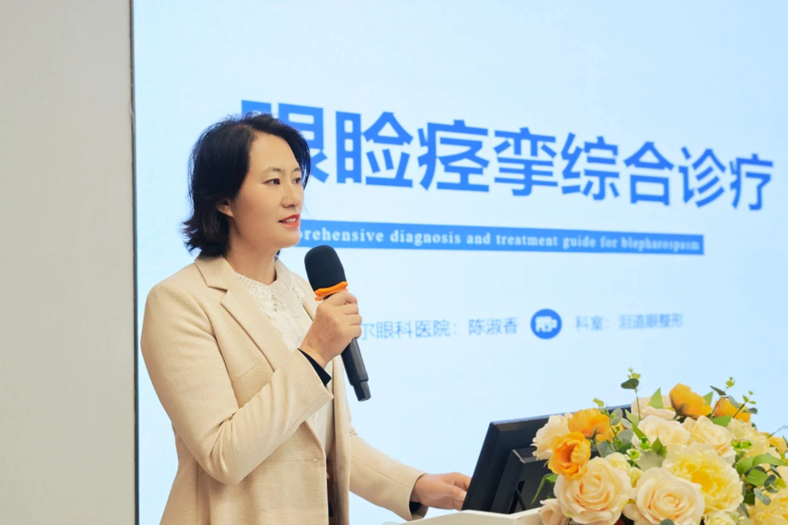 淚道整形科主任陳淑香圍繞《眼瞼痙攣綜合診療》主題進(jìn)行了精彩分享。她詳細(xì)介紹了眼瞼痙攣的病因、診斷及治療方法,為與會者提供了全面的診療思路。