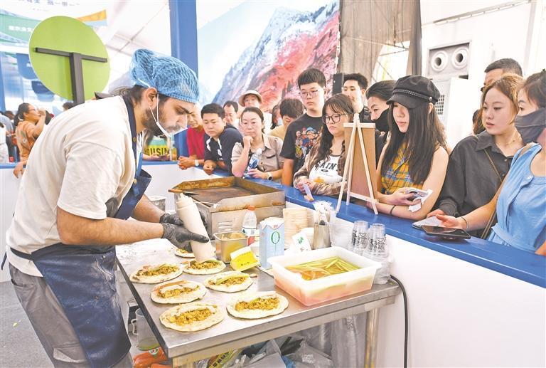 8月31日,銀川國際會展中心的巴基斯坦雞肉沙威瑪攤前排起長隊。當日是第七屆中阿博覽會收官日,同期舉辦的“一帶一路”美食文化市集熱度不減。34個國家和地區(qū)、53個國際國內代表性參展商帶來的“味覺地圖”在家門口鋪展。 記者 白茹 攝