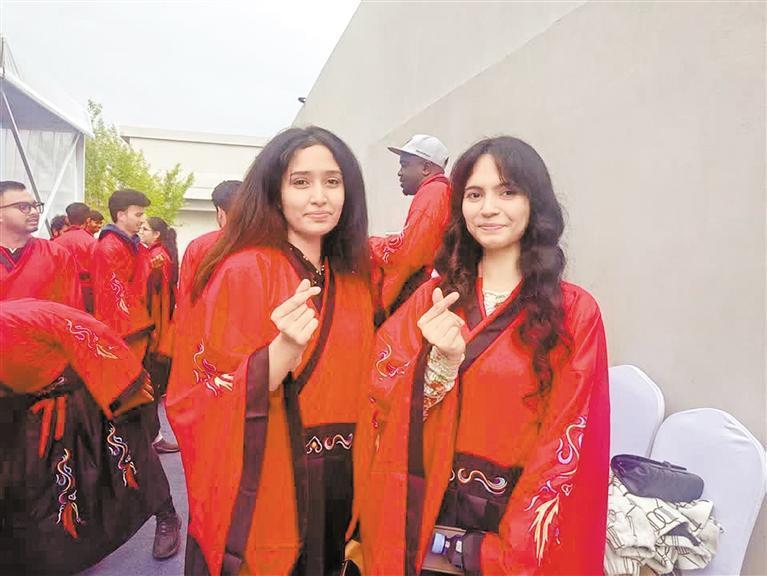 當(dāng)?shù)弥腥硕伎梢源h服打卡拍照后,年輕的留學(xué)生們表現(xiàn)得非常興奮?!斑@是我第一次穿漢服,感覺(jué)穿越到了中國(guó)古代!”“穿漢服,感覺(jué)很美麗!”