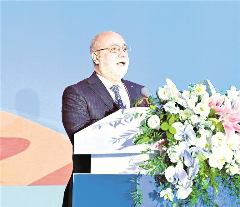 約旦哈希姆王國駐華大使胡薩姆·侯賽尼在洽談會上致辭。